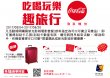 可口可樂®吃喝玩樂趣旅行【三2017-07-05 ~ 2017-09-03第一重刮刮樂:<br> 消費指定套餐內含可口可樂公司系列飲料,或點購任一套餐+5元,套餐飲料升級超值杯,即可獲得刮刮卡,即刮即中張張有獎...more |
