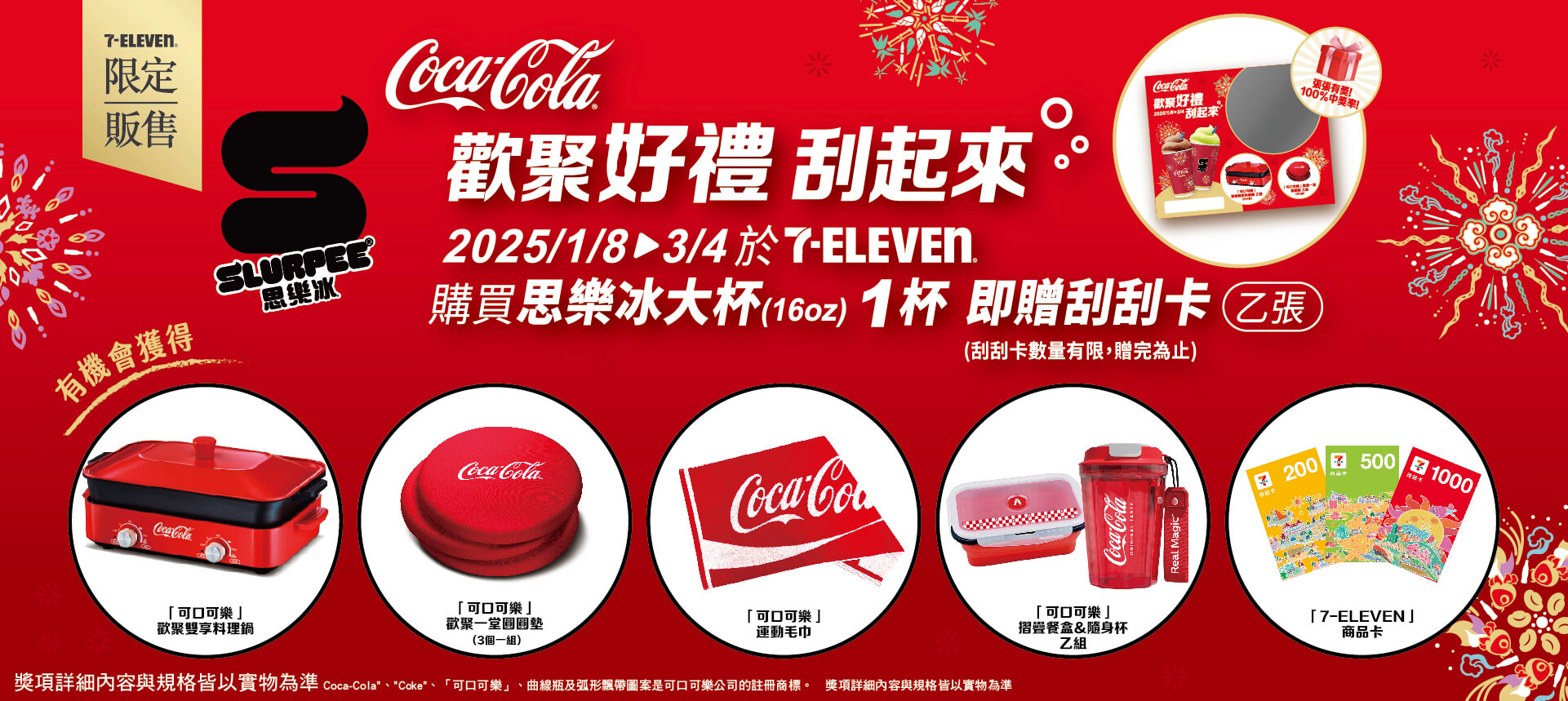| 活動說明: | 凡活動期間於統一超商購買思樂冰大杯(16oz) 乙杯,即贈刮刮卡乙張,有機會刮中可口可樂限量好禮。(刮刮卡數量有限,贈完為止) |