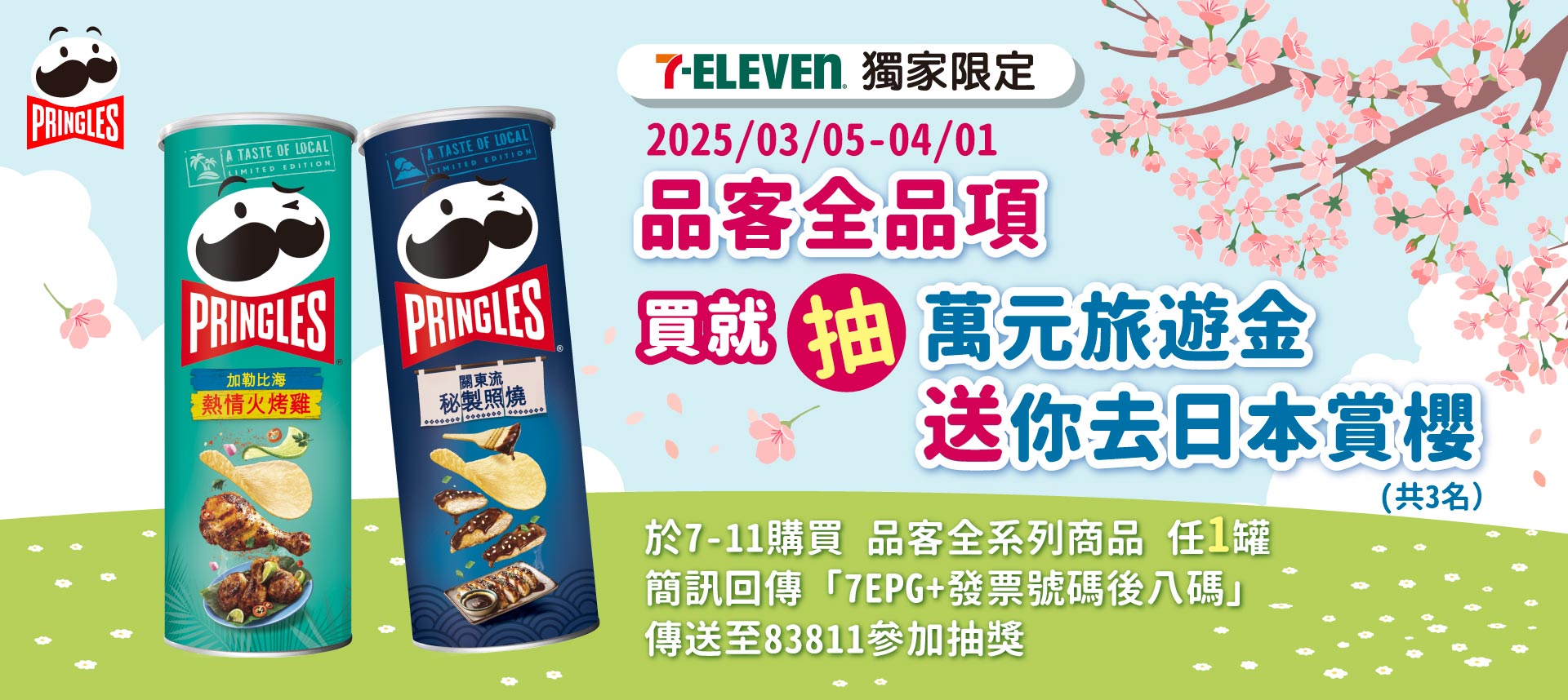 (7-ELEVEN獨家限定)2025 品客【買品客全系列商品任1罐 抽萬元旅遊金去日本賞櫻】