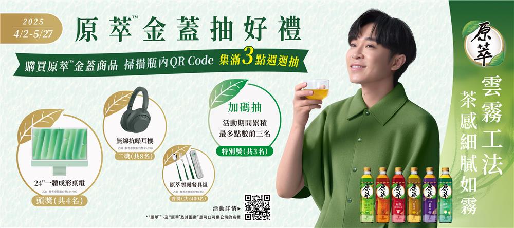 | 活動包裝/活動品項: | ※ 活動指定商品銷售地區以實際鋪貨通路為準,非指定包裝恕無法參與本活動。![]() 「原萃」日式綠茶 - 350mL/580mL /975mL/1.25L 「原萃」綠茶玉露 - 580mL /1.25L 「原萃」錫蘭無糖紅茶 - 580mL 「原萃」日式焙香煎茶 - 580mL 「原萃」文山包種烏龍茶 - 350mL/580mL/1.25L 「原萃」木柵鐵觀音 - 580mL 「原萃」日式綠茶 - 580mL 4入組合 「原萃」綠茶玉露 - 580mL 4入組合 「原萃」錫蘭無糖紅茶 - 580mL 4入組合 「原萃」日式焙香煎茶 - 580mL 4入組合 「原萃」文山包種烏龍茶 - 580mL 4入組合 「原萃」木柵鐵觀音 - 580mL 4入組合 |