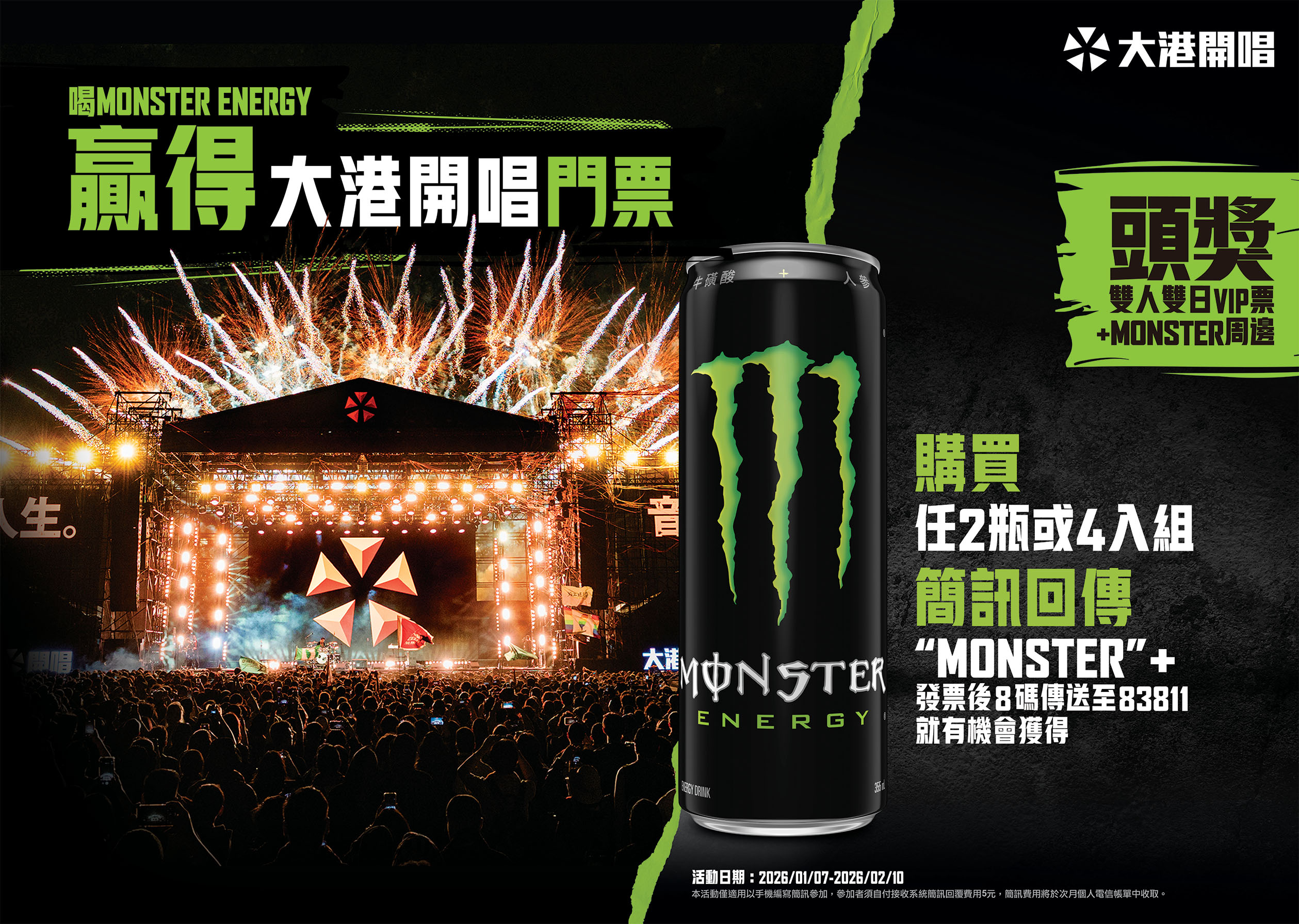 2026喝Monster Energy®贏得大港開唱門票