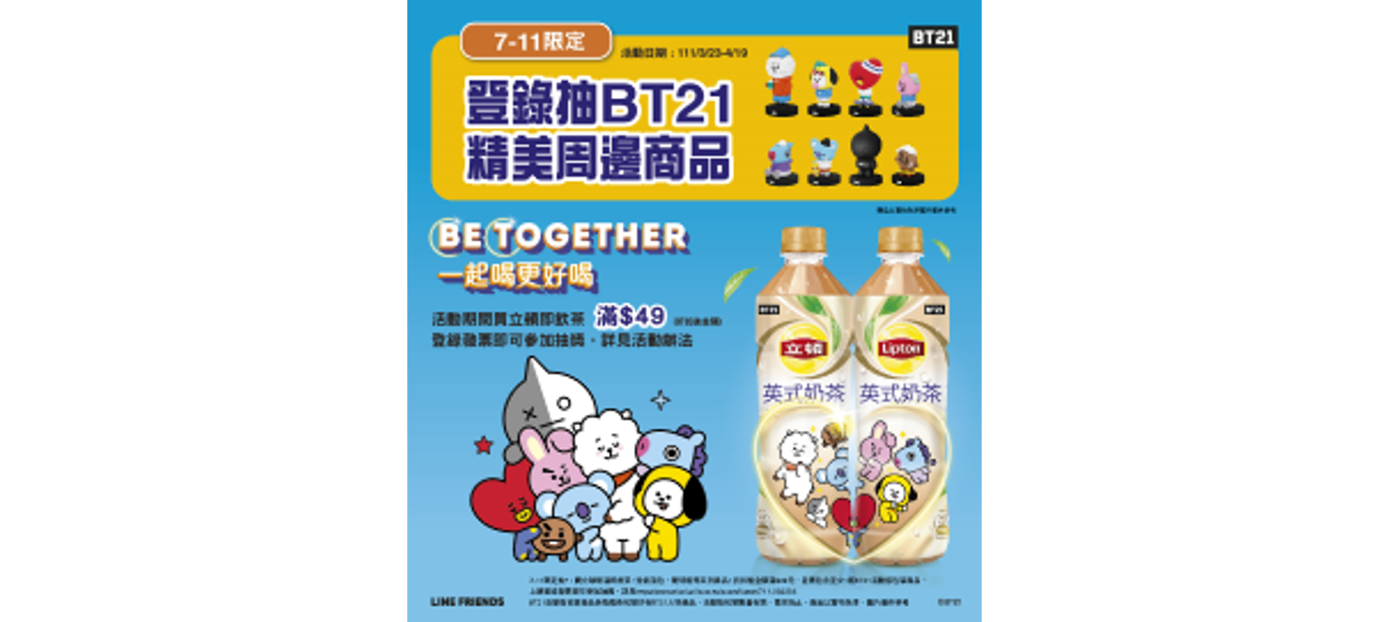 【立頓 7-11限定發票登錄】獨家抽BT21精美周邊商品