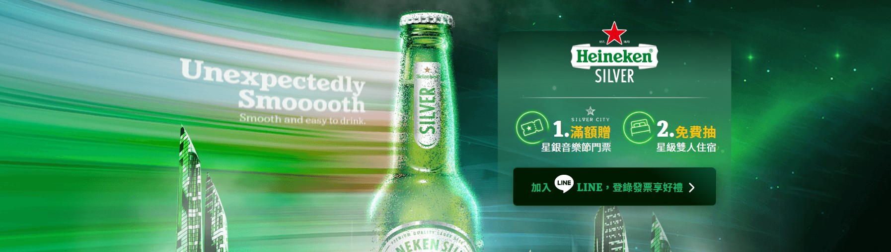 | 活動商品: | 海尼根Silver星銀啤酒易開罐系列商品(330ml/500ml) |